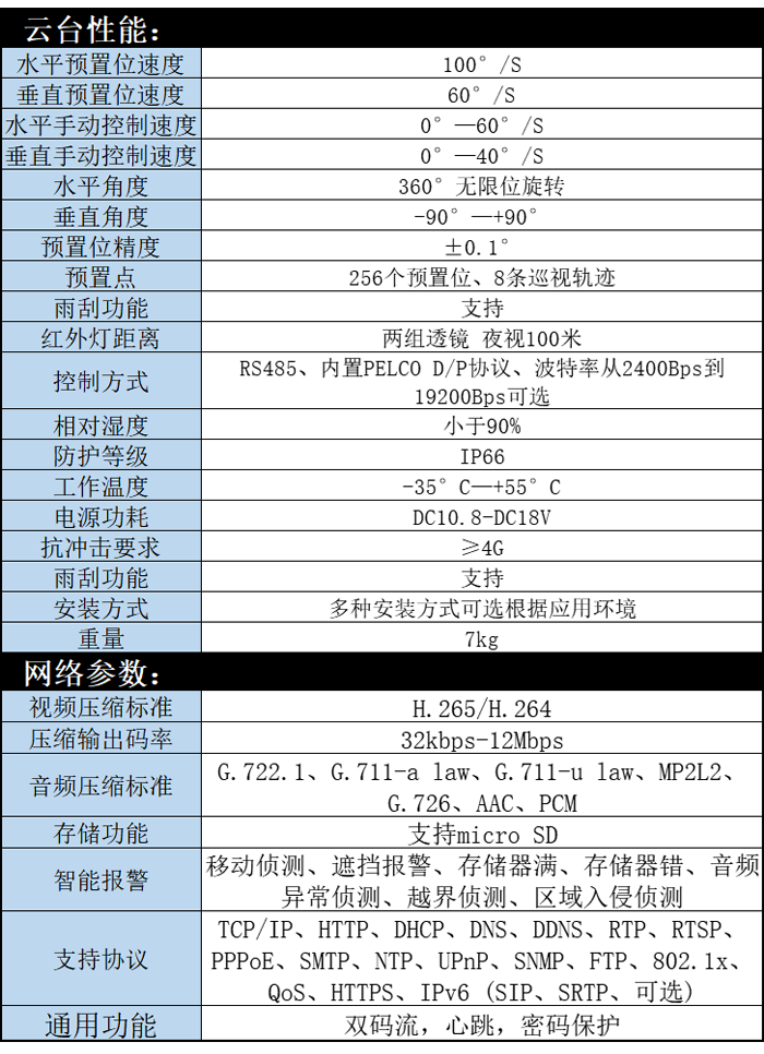 4G車載高清云臺(tái)攝像機(jī)是一款集高清圖像采集、4G無線傳輸、錄像存儲(chǔ)、云鏡控制、語音對(duì)講的高清車載云臺(tái)網(wǎng)絡(luò)攝像機(jī)。產(chǎn)品具有超強(qiáng)抗振、可靠性高、環(huán)境適應(yīng)能力強(qiáng)、安裝靈活等特點(diǎn)。支持主流百萬數(shù)字高清一體機(jī)芯及高清SENSOR實(shí)現(xiàn)高清圖像畫面采集,兼容主流高清 平臺(tái)且無縫對(duì)接,最高支持1080P輸出,支持雙碼流及高清抓拍,支持IE瀏覽。