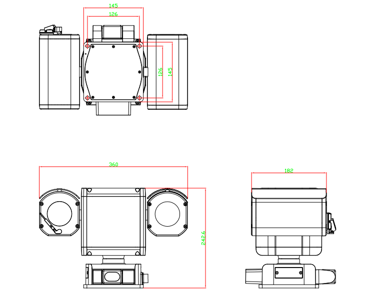 攝像機(jī)采用全景+細(xì)節(jié)工業(yè)一體化設(shè)計(jì)方案,全景采用主副雙攝像頭設(shè)計(jì)并可實(shí)現(xiàn)上下垂直調(diào)節(jié),細(xì)節(jié)采用云臺(tái)攝像機(jī)設(shè)計(jì)