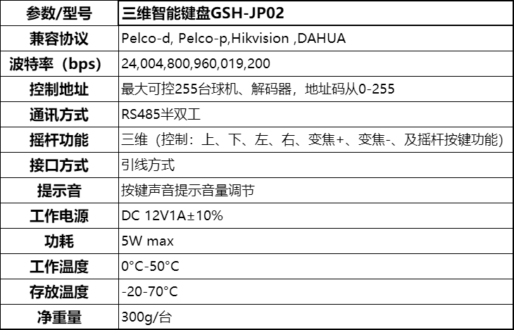 本款控制鍵盤是為了更方便的操控快球和云臺等前端設備而設計。